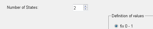 Select for the "Number of States" 2 as well as for the "Definition of values" fix. The Number of States changes the number of values for the "Definition of values".