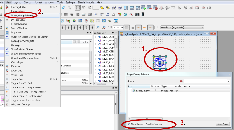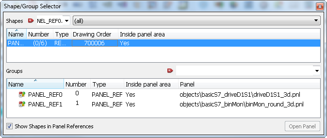 This opens the window "Select Shape/Shape Group/Panel Ref".