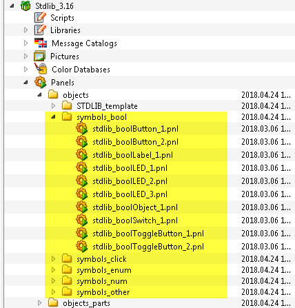 These reference symbols are a BOOL template and an ENUM template which can be used according to your requirements. These reference symbols are used by default for all other StdLib templates. The StdLib templates again are used to create symbols.