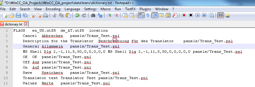 The following chapter demonstrates how to translate a project specific panel (via Export - Dictionary functions - Import).