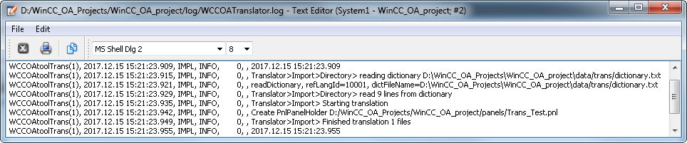 The log file is opened after the import process where you can see the work steps, the number of lines read from the dictionary :