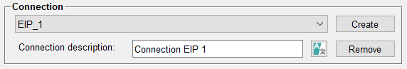 Click on the Ethernet/IP Driver button. Configure the PLC in the following parameterization panel. An internal datapoint of type _EIPConn is created for each PLC (see also Internal datapoints of the Ethernet/IP driver.)