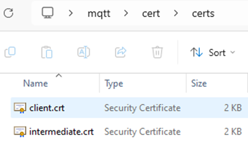 Figure 1 . Project Certificate Folder - mqtt/cert/