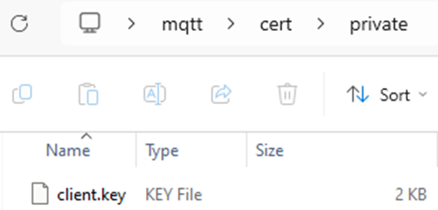Figure 3 . Project Certificate Folder - mqtt/cert/private/