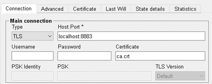 To configure Mosquitto the .conf file must be adapted and the certificates
