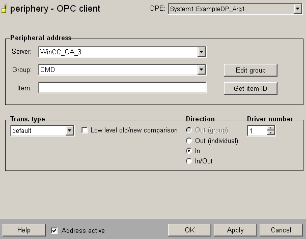 The peripheral address is composed from the three entries under Server, Group and Item; "$" is used as a separator: