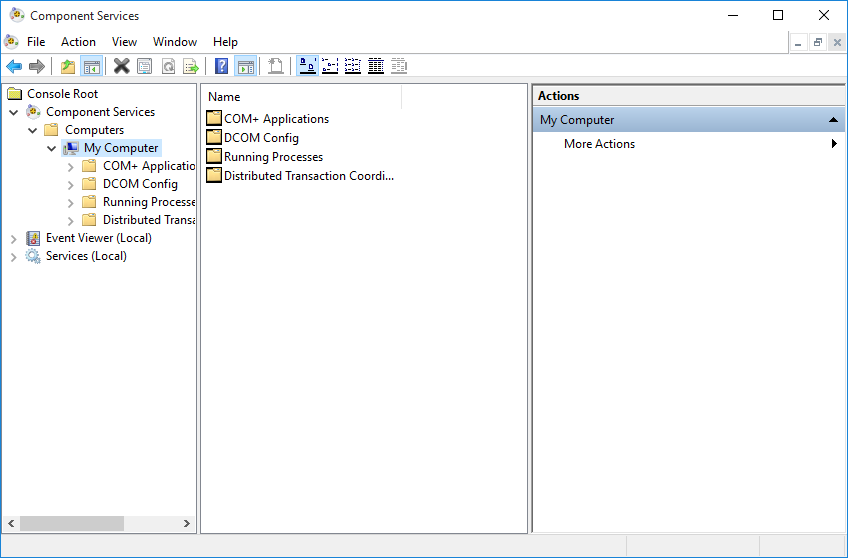 Open the window Component Services ("Windows button + R" > Enter "dcomcnfg" > OK).