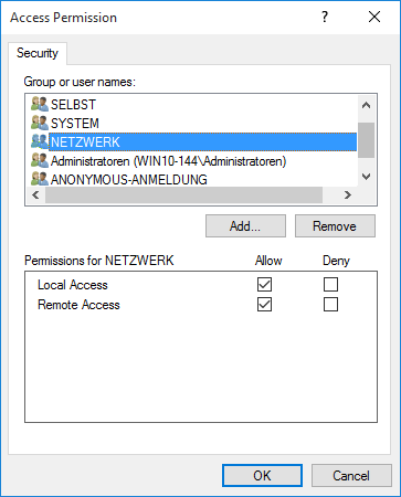 To establish a DCOM connection between two computers, both computers must have appropriate access permission. If both computers are running in the same domain, user data is automatically synchronized. In this case, the steps described in this section are not necessary. However, if you are using workgroups you have to consider the following settings.