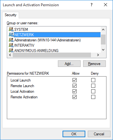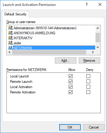 To start a server as remote server, the DCOM settings must ensure that the client can access the server and that the server is able to reach the client via callbacks and can send data.
