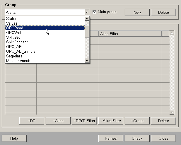 Note that the OPCRead and OPCWrite groups may not be deleted. If you however delete the groups you have to create an alias for the groups, otherwise the OPC server of the groups cannot be found.