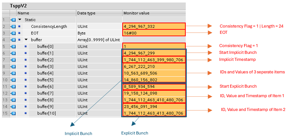 Note:In an explicit bunch an item consists of the ID, the Value and a separate timestamp.