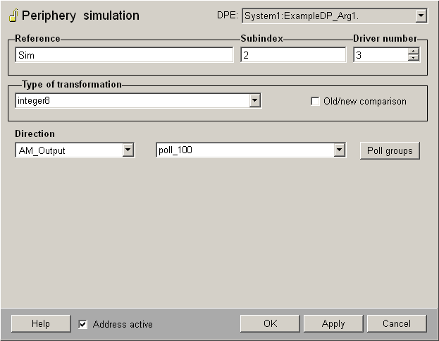 The Option “Address active” must be checked to activate this configuration with the SIM driver (see also Reference tables) . Unchecking the box will inform the driver to ignore this configuration.
