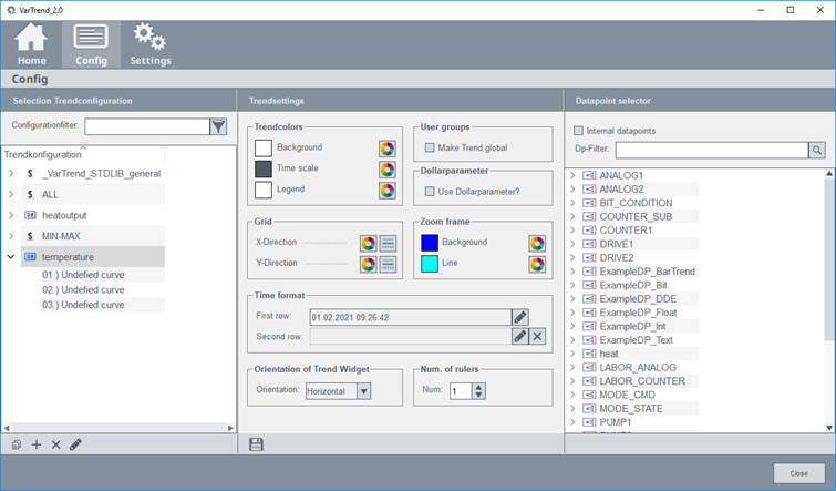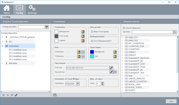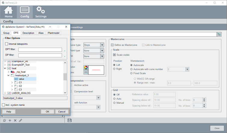 - Click on the datapoint selector to add a DPE to this curve (e.g. waermeleistung_3.value:_original.._value).