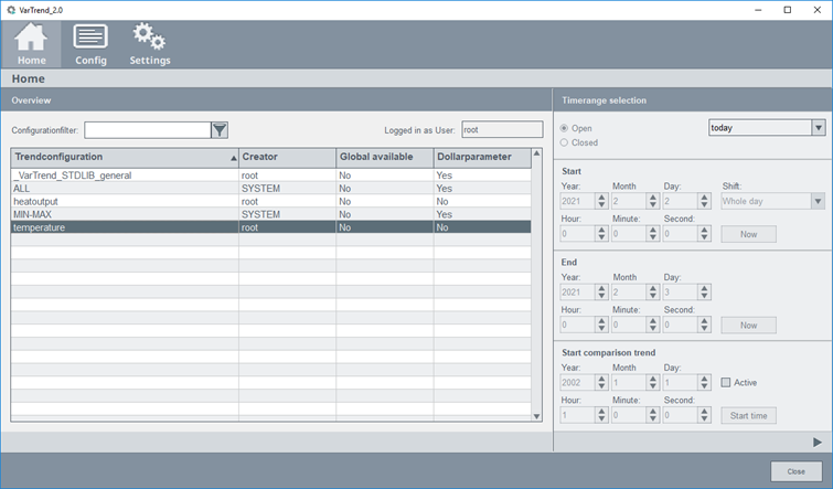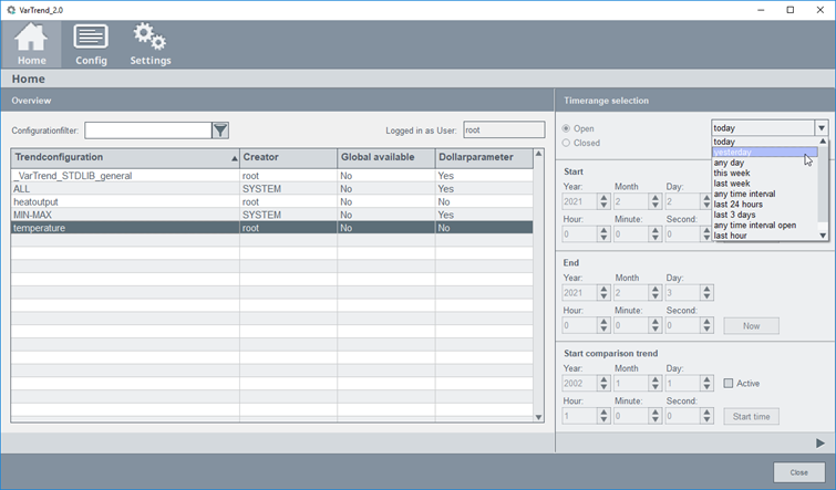 Select the predefined trend display group Temperature trend to display it as today's trend: