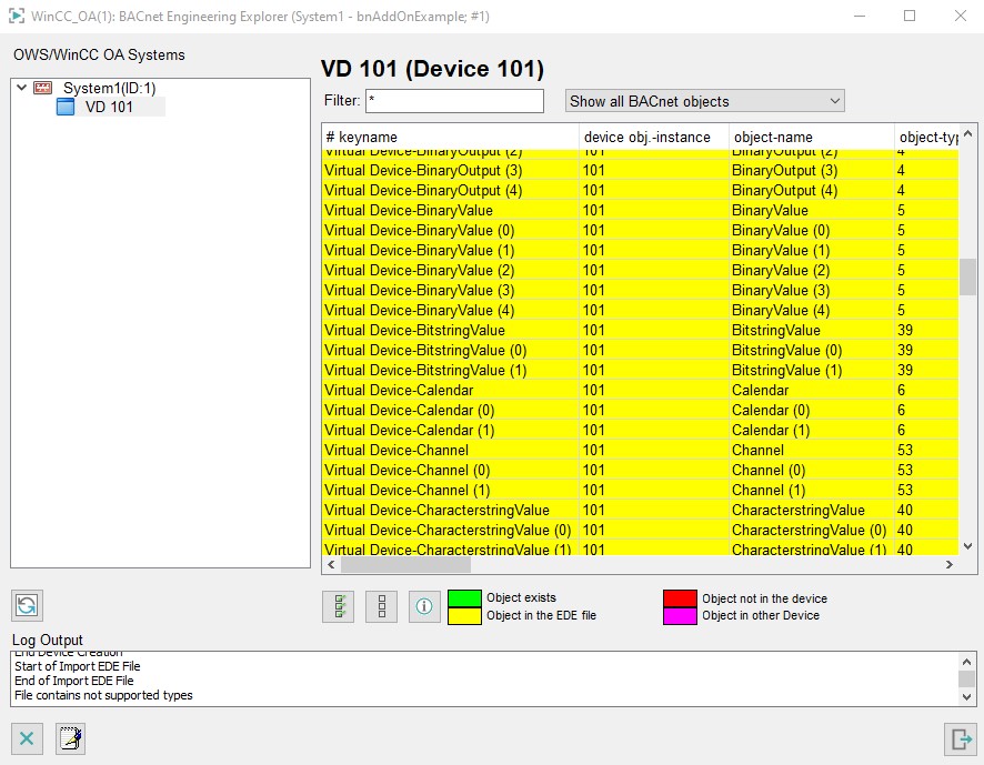 The aim of this example is to extend an existing example panel "Testpanel_Symbs.pnl" and to create a new BACnet device including objects. The device information is taken from an EDE file template (offline engineering).