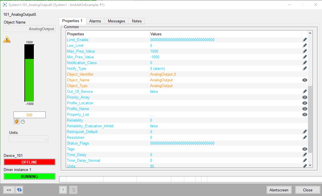 Open the faceplate of the object "AnalogOutput" by a double-click on the corresponding row of the table.