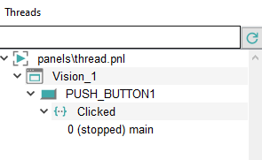 The threads are displayed in the Threads window when a thread is running. Threads can be debugged. If a thread is stopped, you can jump around in the thread. If it is