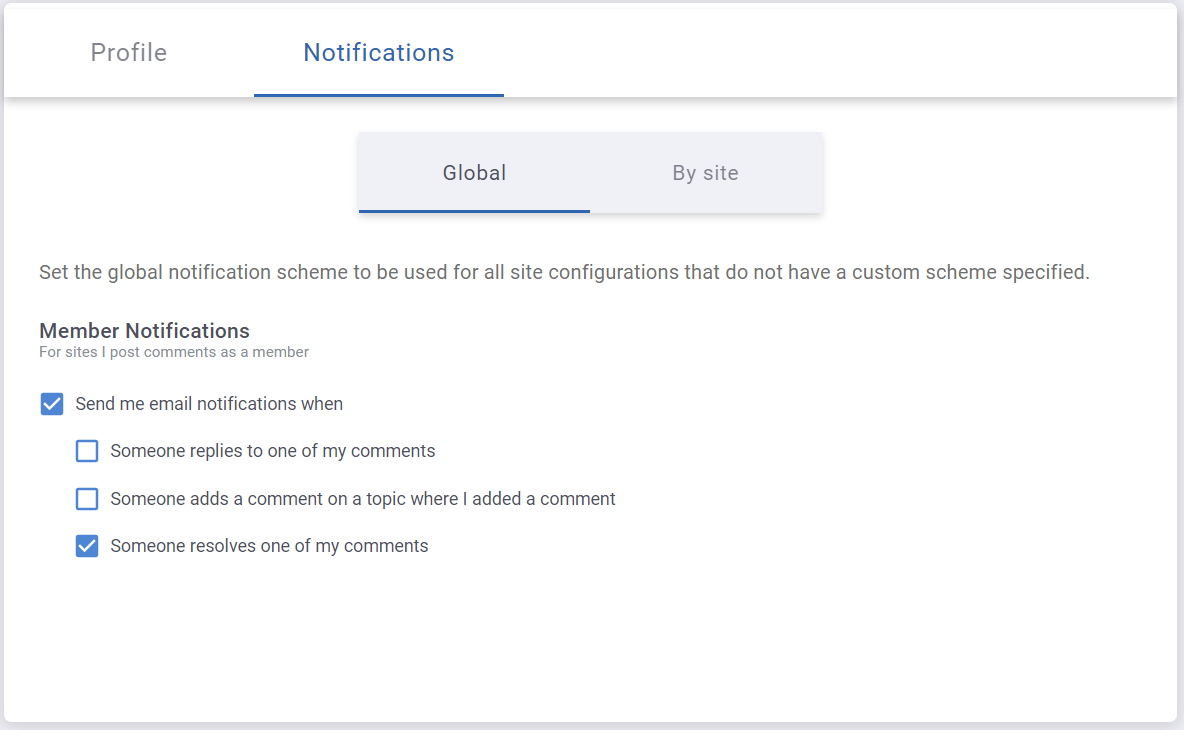 In your user profile you can, among other things, make settings for e-mail notifications regarding your comments.