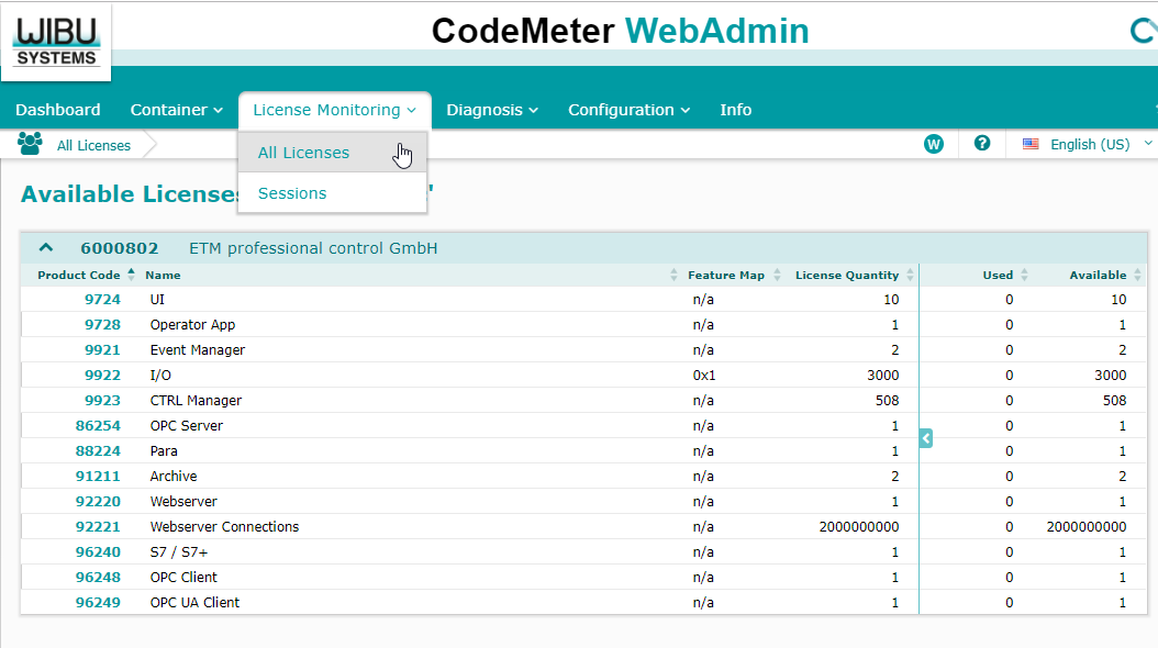 Figure 3. WebAdmin: License Monitoring - All Licenses