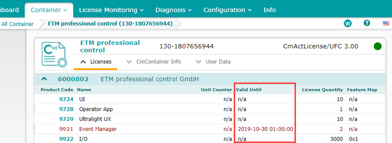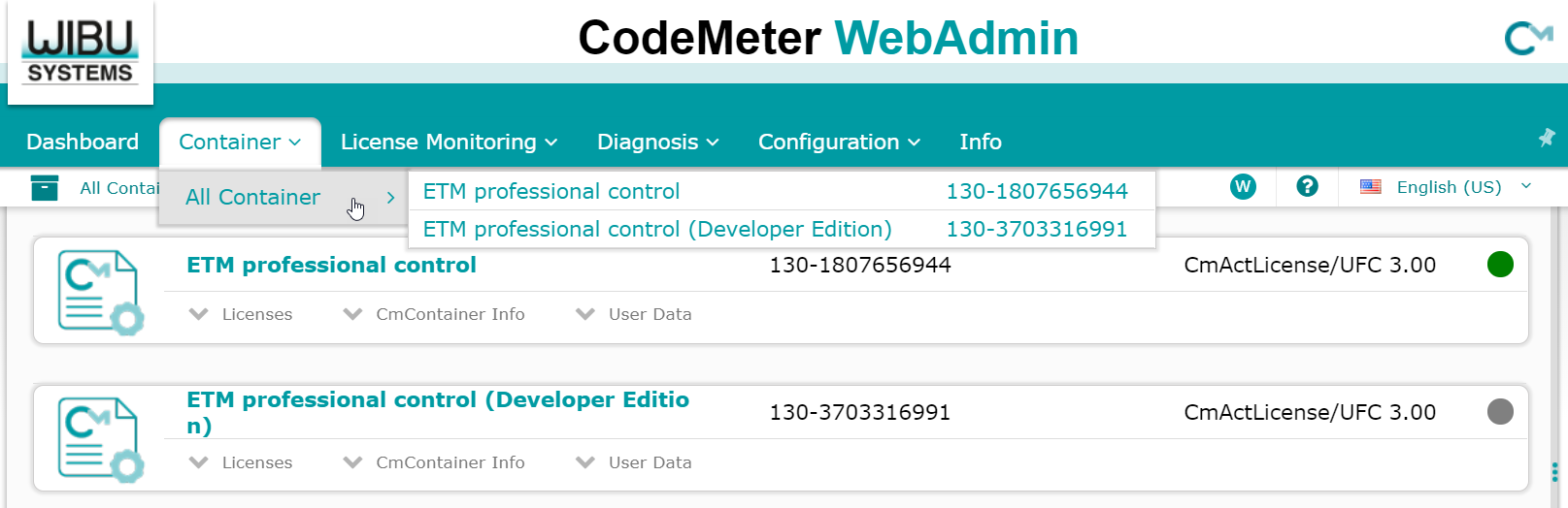 - Open the WebAdmin via the CodeMeter Control Center (See the description of Check Available Licenses for screenshots ).