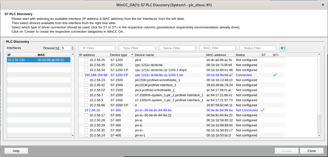 Important:The first available driver of the selected type (S7/S7+) is used, when creating a new datapoint.