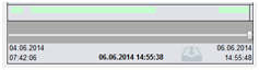 The displayed time range of the slider matches the time range of the recorded videos at the time of opening the panel. Begin and end are displayed left respectively right beneath the slider. The range is not automatically updated due to constant changes when using a ring recording. The displayed time range can be adjusted to the demands of the user by using the corresponding commands. The slider can be updated, e.g. based on information received from a time line table. Rows of the time line table can be added to the slider via drag and drop. The time line adjusts to the corresponding time range. Now the border of the drop zone changes to blue and signals that no automatic update is performed if a new camera is added to the EWO. Above the slider the available video sequences are displayed as time bars. The top bars display the time range in which normal recordings are available. The bars below display recordings which are protected. A black bar indicates the current position of the recording. If multiple camera recordings the time line information is connected with an OR connection. This means in the displayed range at least one camera provides a recording. |
