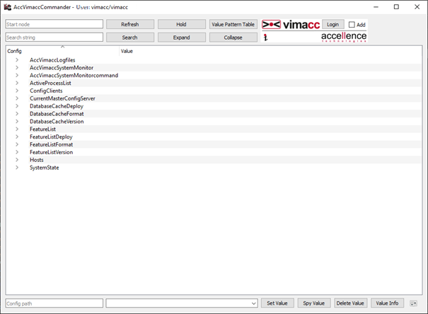 It is recommended to use this functionality in combination with the AccVimaccConfigSlave component (in single and redundant operation). The AccVimaccRoot service which is installed on every vimacc host is also used for this.