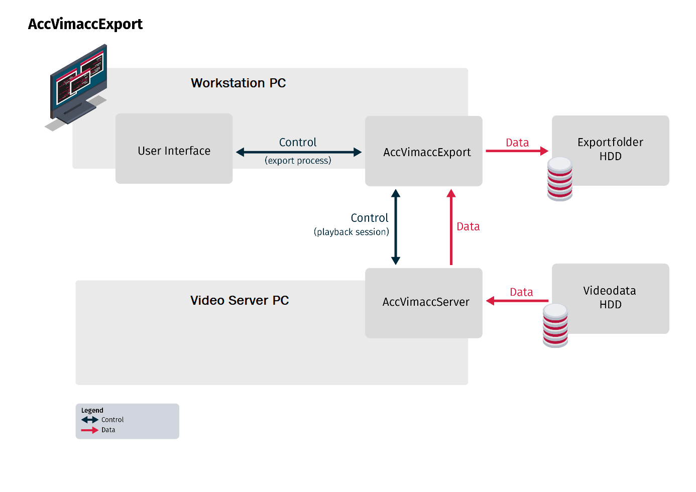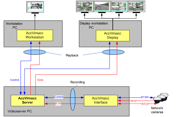 The component AccVimaccWorkstation can generally be used on any computer in the WinCC OA video system and even outside of the video system. For example, it can be added to the removable media on export of recorded streaming data and will then enable replay of this data on any desired computer.