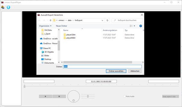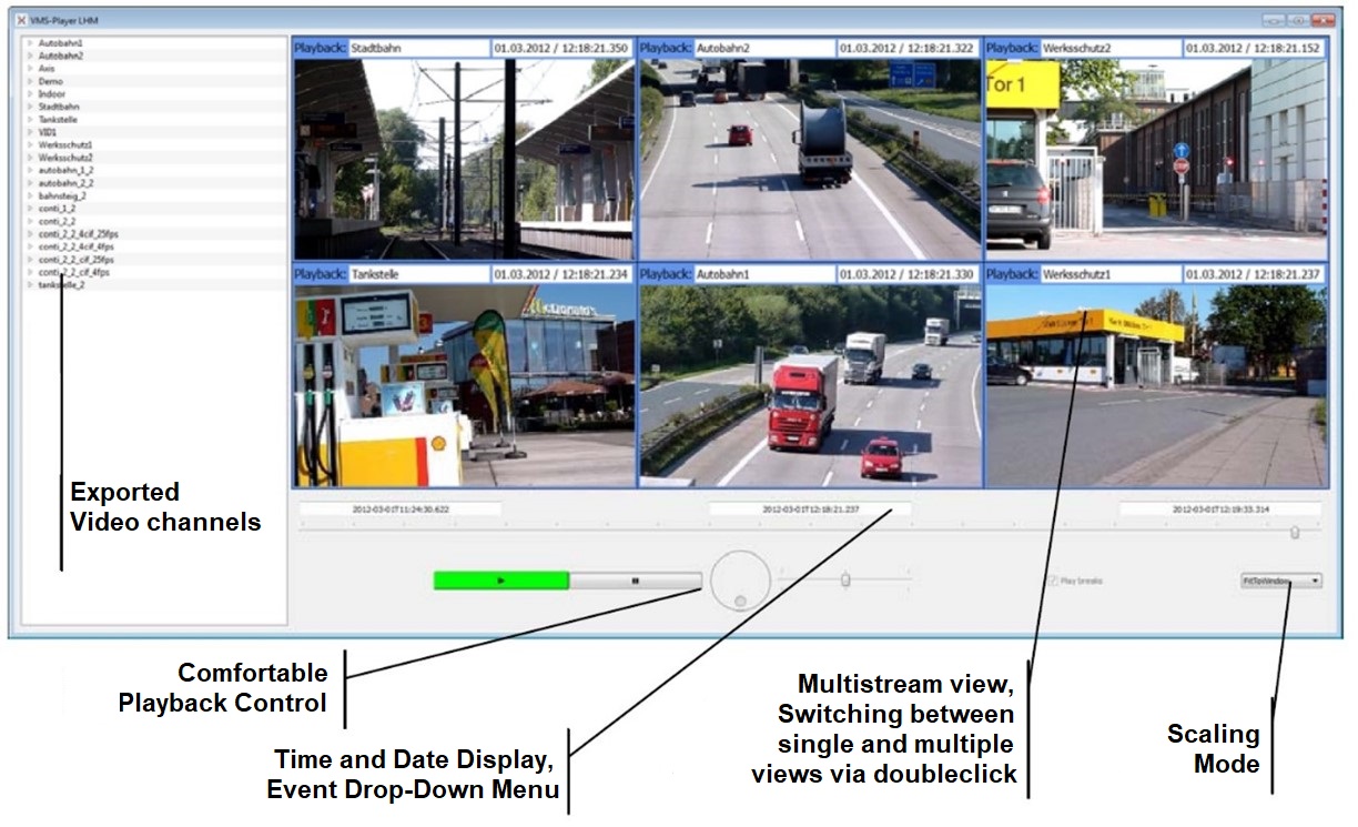 The Video Export Player of the video managementsystem is a stand-alone-software to show exported Video files. This will be added to the removable media (e.g.: DVD, USB stick, ect.) when exporting video files, which ensures the replay of the files on every desired computer.