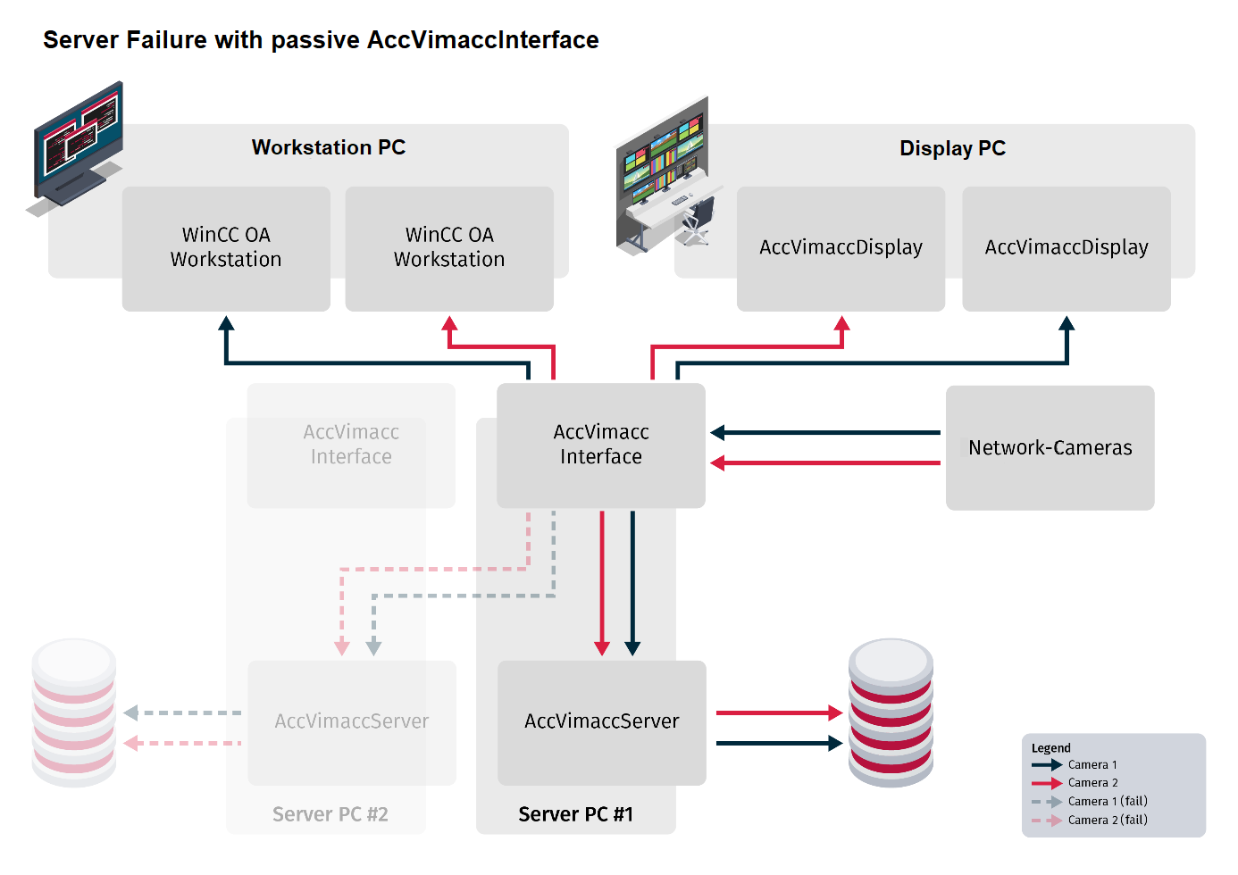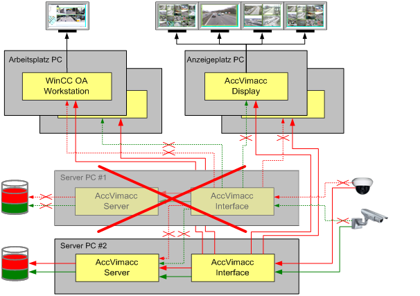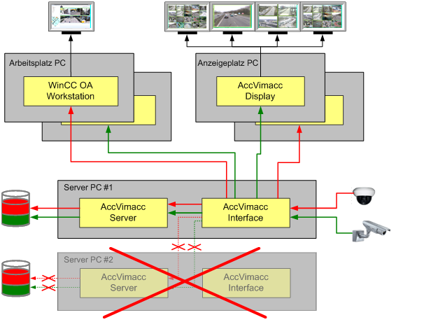 Usually AccVimaccConfig runs on a central component of the system, e.g. a WinCC OA server. To increase the system stability it can also run on another host e.g. a redundant WinCC OA server. The redundant host can take over if a component fails. Therefore a failure-free operation is ensured.