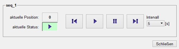 This panel allows to start and pause the sequence as well as taking steps forward or backward. Moreover it is possible to define the interval (1-60 seconds).