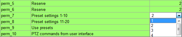 | perm_10 | PTZ Commands from User Interface | 3 | Enables PTZ commands via the user interface. |