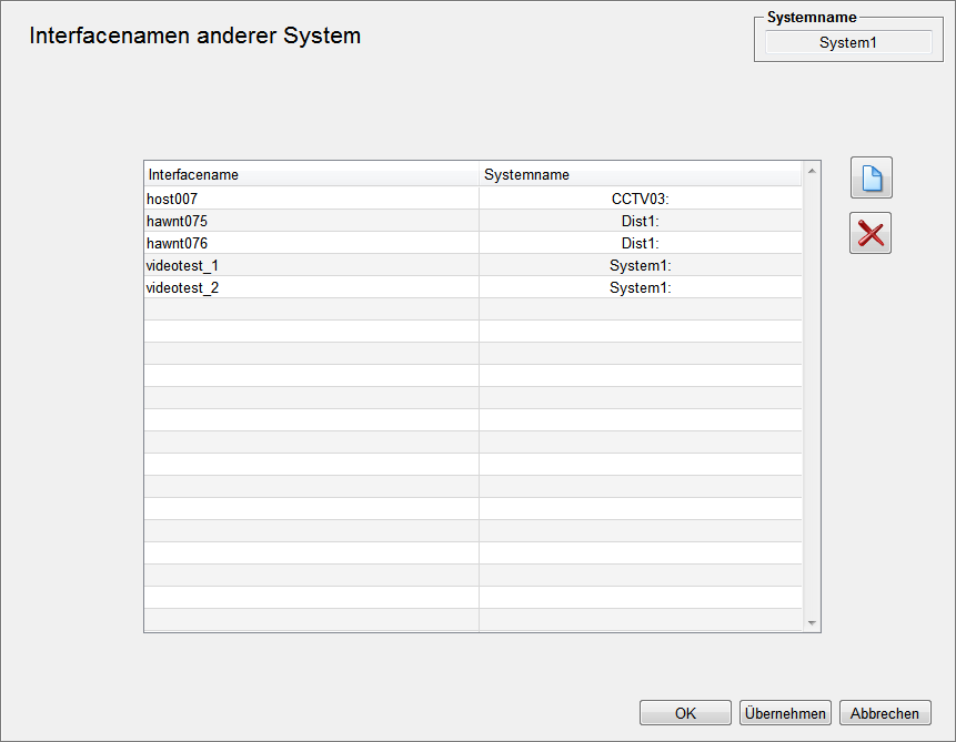 The colon is automatically added to the system name. Each interface name must be unique. If there is no assignment, the system proceeds on the assumption that all cameras are in the current system. Therefore, wrong playlists might be displayed. |