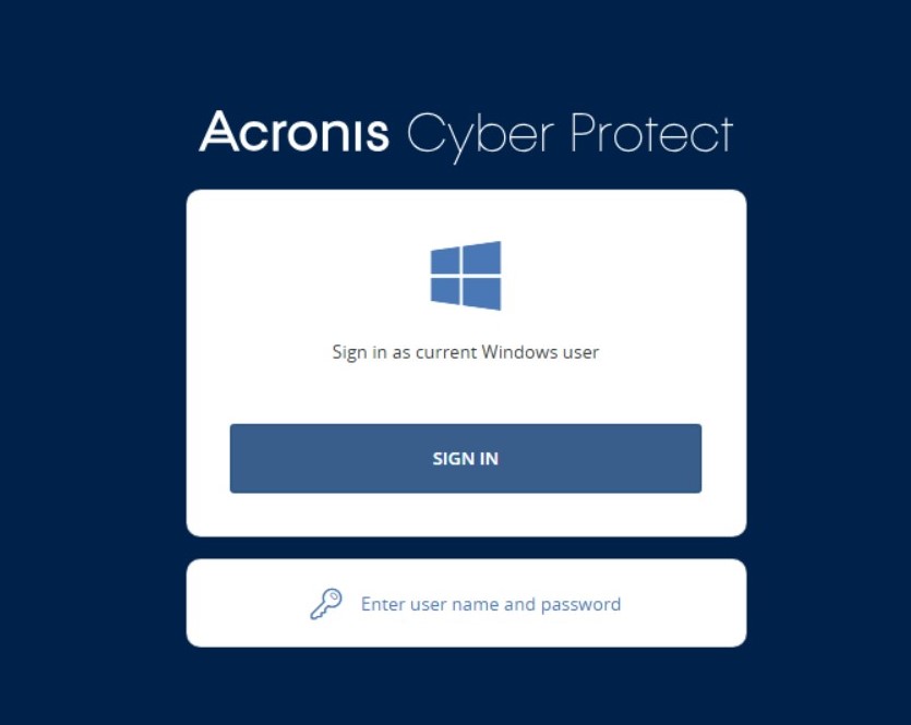 Nachdem Sie die Acronis-Backup-Software installiert haben, stellt Acronis eine Dashboard-App für die einfache Verwaltung Ihrer konfigurierten Backups bereit. Loggen Sie sich hier mit ihren Benutzersystem-Anmeldedaten ein.