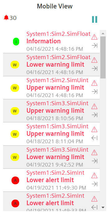 Der Alert View bietet eine Übersicht über alle aktiven Alarme, ähnlich des Alarm- und Event-Schirms in WinCC OA.