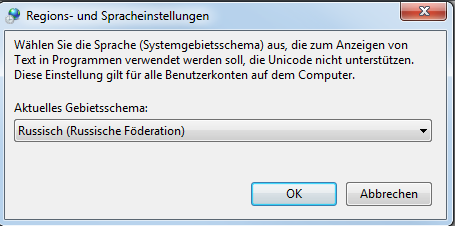 - Ändern Sie das Gebietsschema auf die gewünschte Sprache wie z.B. Russisch.