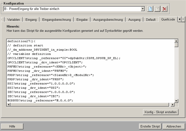 Konfig - Skript erstellen erfolgt ein Aktualisierung des betreffenden