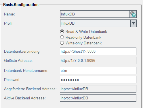 - Ändern Sie die Verbindung von <$host1> auf https://IP-Addresse des Datenbank-Hosts:8086. $host1/$host2