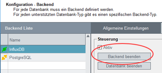 - Starten Sie das Backend (Out-of-proc) über die "Backend beenden"-Schaltfläche der Backend-Registerkarte-> Allgemeine Einstellungen neu: