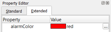 Der Typ der Eigenschaften kann auch ein spezielles Keyword nur für den GEDI sein um einen entsprechenden Auswahldialog innerhalb des Eigenschaftsfensters zu ermöglichen. Zum Beispiel wird für den Typ "color" ein entsprechender Farbendialog angezeigt (siehe oben). Folgende Typen stehen zur Verfügung:
