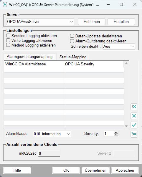 In diesem Abschnitt kann eine WinCC OA-Alarmklasse einer bestimmten OPC UA-Severity zugeordnet werden.