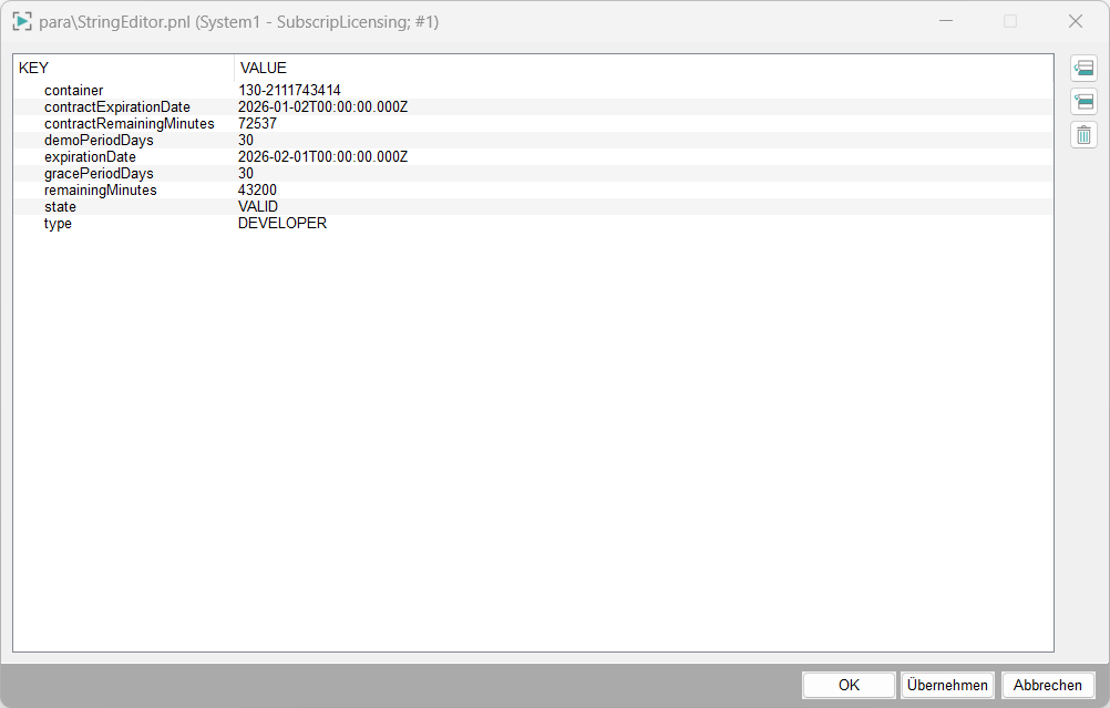 Diese Schaltfläche ist für Einträge vom Typ String sichtbar und öffnet einen
