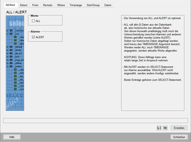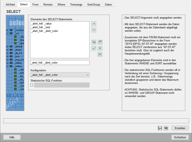 - Öffnen Sie die Registerkarte Select und wählen Sie die Elemente _alert_hdl.._value, _alert_hdl.._text und