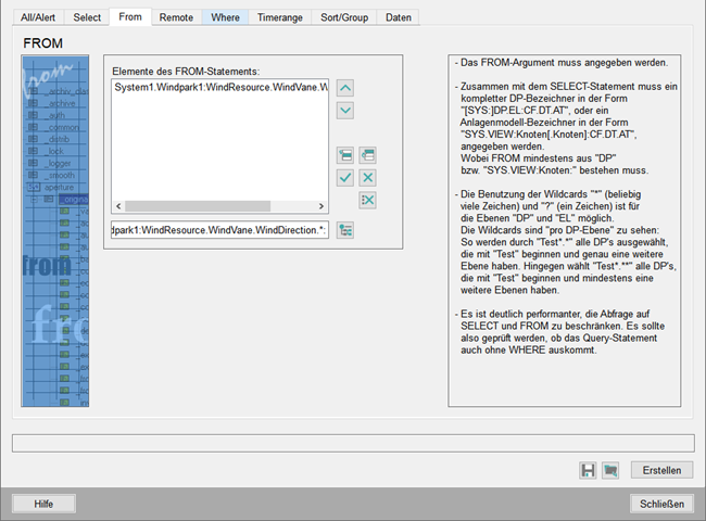- Öffnen Sie die Registerkarte From und selektieren Sie den Knoten System1.Windpark1:WindResource.Windrad.Windrichtung. Da der Knoten Windrichtung