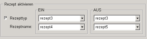 Ermöglicht das Auswählen von vorhandenen Rezepten die über Rezepte-Erweiterung erstellt wurden aus der Combobox. Wenn die Bedingung erfüllt wird, wird das Rezept aktiviert.