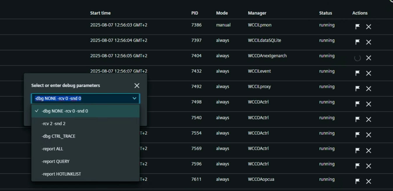 Im Bereich Debug Flags können Sie Debug-Flags für bestimmte Manager in Ihrem WinCC OA System setzen. Nutzen Sie diesen Bereich, um Debug-Ausgaben für die Fehlersuche zu aktivieren oder zu deaktivieren.