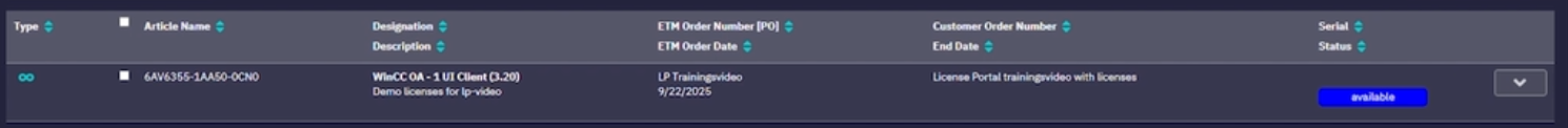 Wählen Sie Ihr Projekt im Lizenzportal aus.