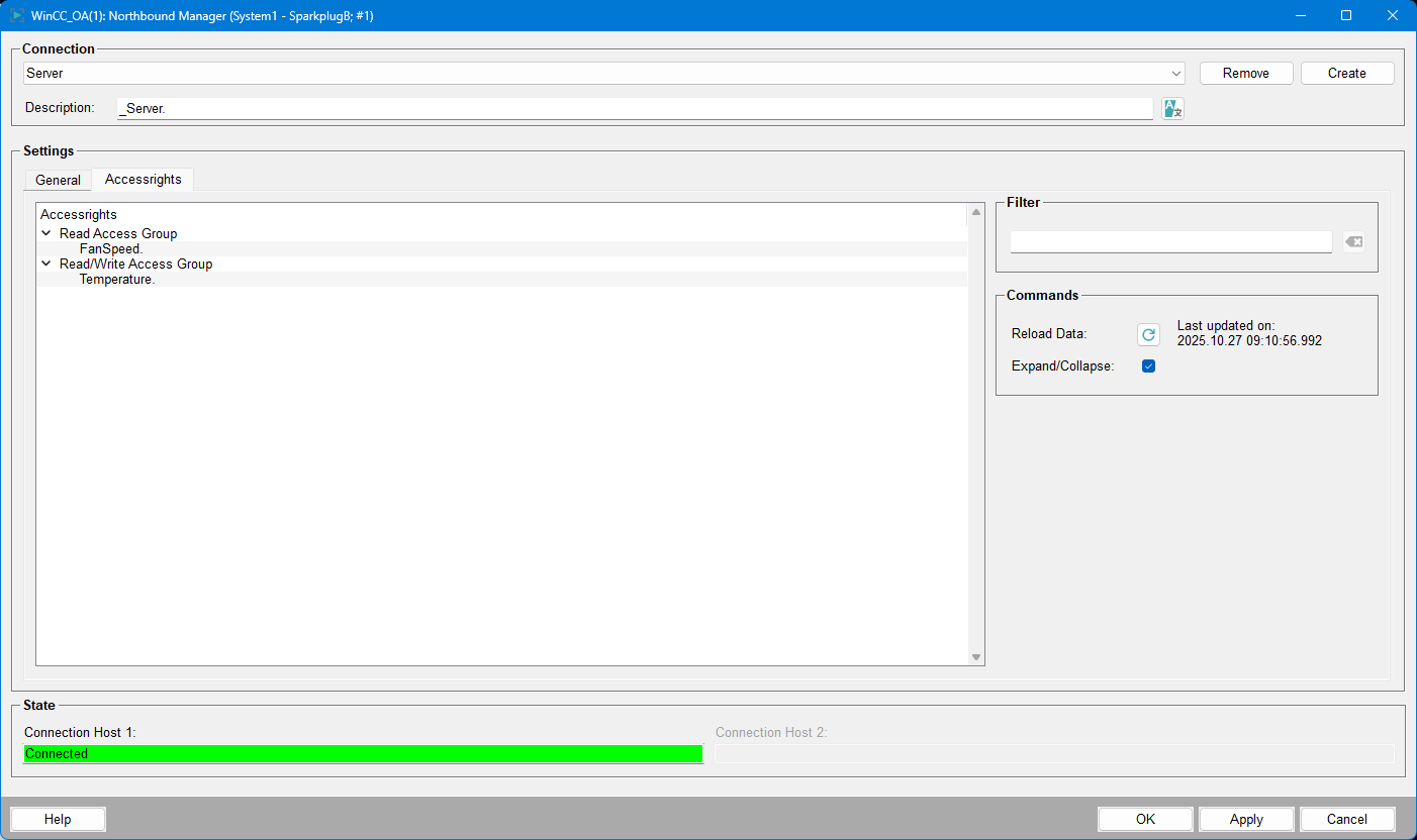 Erstellen Sie in der Northbound Manager-Oberfläche eine neue Verbindung mit dem Verbindungsnamen, der dem JavaScript Manager hinzugefügt wurde, siehe Grundkonfiguration.