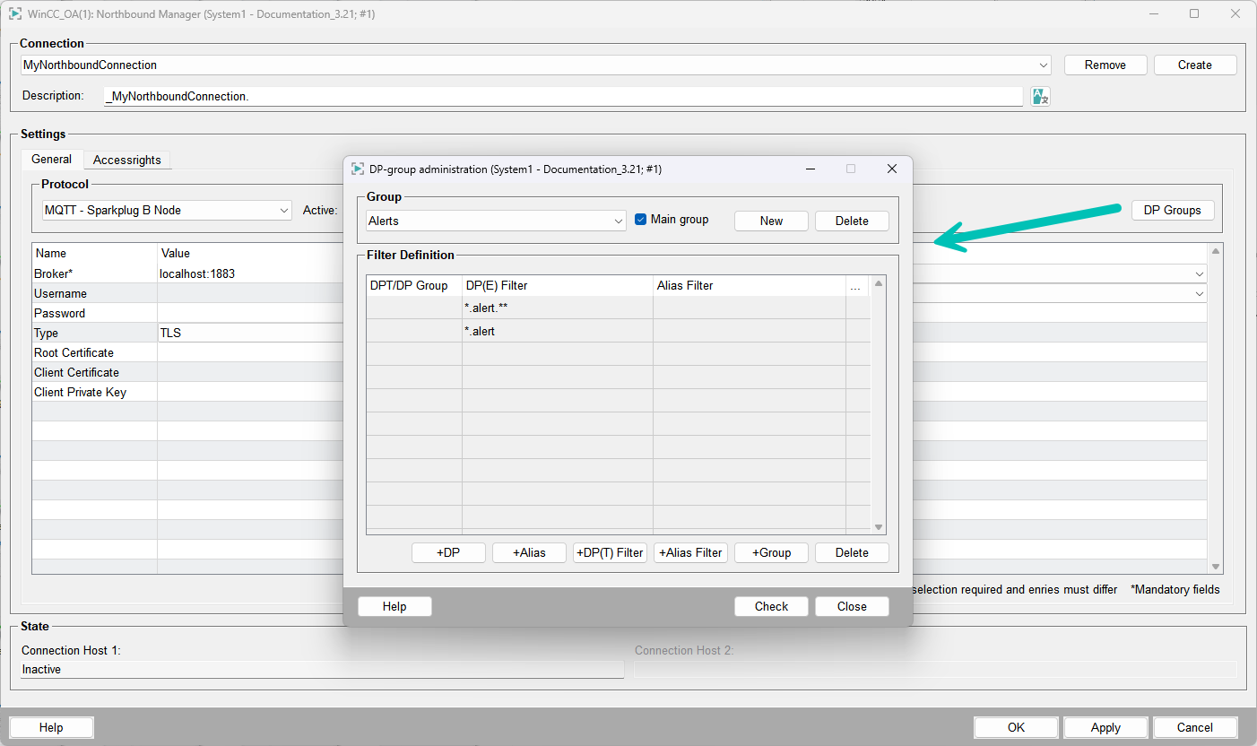 Konfigurieren Sie eine DP-Gruppe als Datenquelle für den Sparkplug B EoN-Knoten.