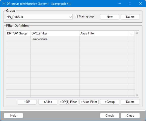 Klicken Sie auf DP-Gruppen, um das DP-Gruppen-Administrationsfenster zu öffnen.